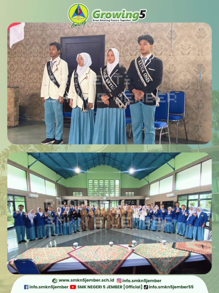 Dikomandoi oleh wakil kepala sekolah bidang kesiswaan Bapak Moh. Saleh, S.Pi, M.M selaku Pembina OSIS mewakili Kepala SMK Negeri 5 Jember dan dibersamai oleh Waka. Kurikulum, Humas dan Ketua Konsentrasi Keahlian, secara resmi melantik dan mengikuhkan punggawa baru OSIS/MPK Kaliber.