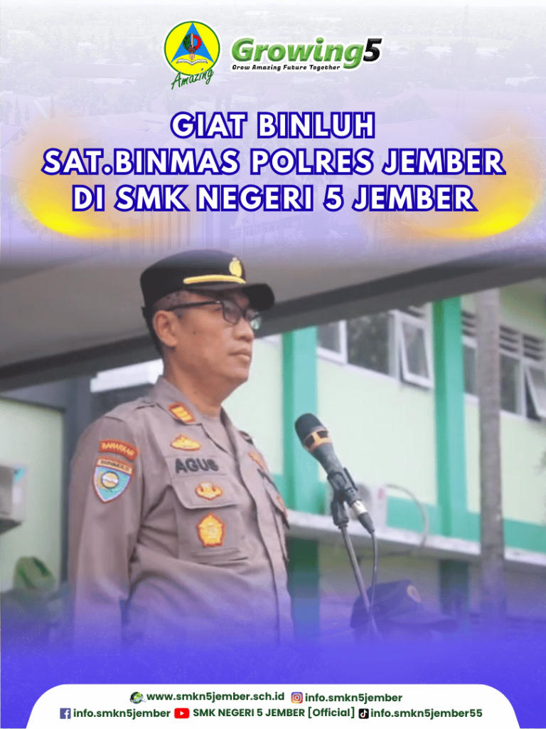 Giat Binmas Polres Jember ini, merupakan salah satu upaya preventif jajaran Polres Jember dengan melakukan penyuluhan secara langsung ke siswa/wi aktif seluruh sekolah, khususnya SMKN 5 Jember untuk mencegah, meminimalisir, serta mengakselerasi dinamika yang terjadi di masyarakat, khususnya yang terjadi di lingkungan sekolah.