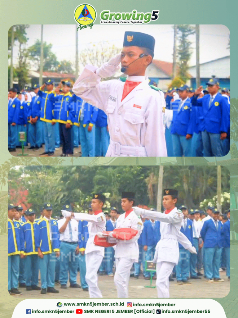 Dibersamai oleh, Bpk. Wakil Kepala Sekolah Bidang Kesiswaan, Humas, serta Pembina OSIS SMKN 5 Jember, kegiatan ini dilaksanakan lapangan hitam Kaliber untuk seluruh siswa/wi kelas X, Bpk/Ibu Guru, Walikelas serta karyawan.