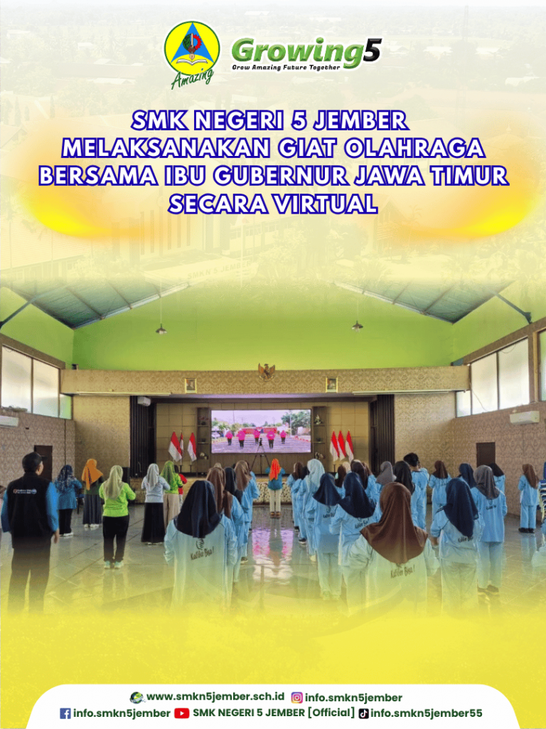 Untuk di ketahui bersama bahwa ini merupakan rangkaian dari Peringatan Hari Olahraga Nasional (Haornas) XLII Tahun 2025 yang mengusung tema “Jatim Sportiv: Jatim Sport Festival”, dan tentu saja SMK Negeri 5 jember juga ikut mensukseskan kegiatan ini, sekitar 40 peserta, baik siswa maupun guru Kaliber melaksanakan kegiatan senam bersama bertempat di aula Kaliber dan disiarkan secara virtual melalui kanal zoom.