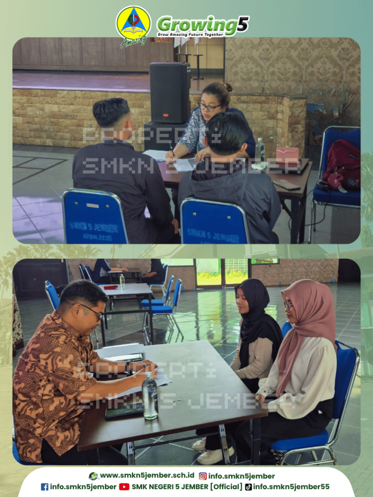 Kehadiran pihak perusahaan dalam Giat rekrutmen dan wawancara kerja untuk posisi sebagai untuk posisi Store Crew, Store Technician, Store Supervisor ini di diterima langsung oleh Kepala SMK Negeri 5 Jember Nanda Wiratama Miftakhul Fauzi, S.Pd,M.Pd, dibersamai oleh wakil kepala sekolah bidang humas dan BKK Kaliber.
