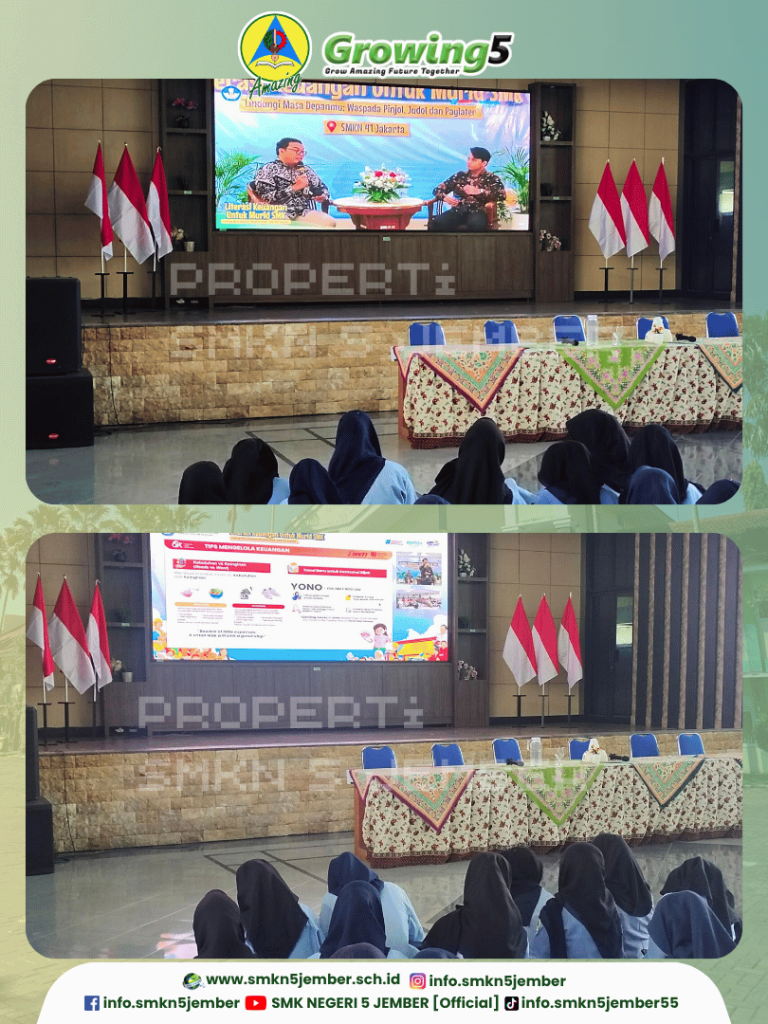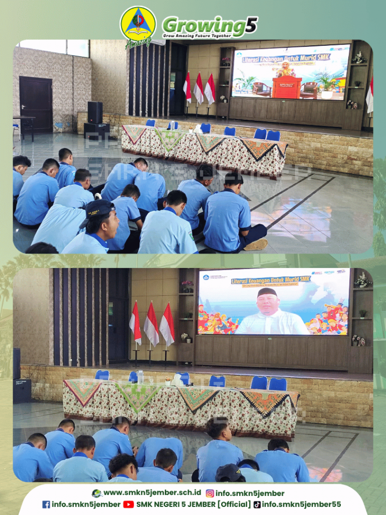 Siswa-Siswi SMK Negeri 5 Jember Mengikuti Giat Literasi Keuangan Untuk Murid SMK dengan tajuk “Lindungi Masa Depanmu: Waspada, Judol, Pinjol dan Paylater” oleh Direktorat SMK Kemendikdasmen.