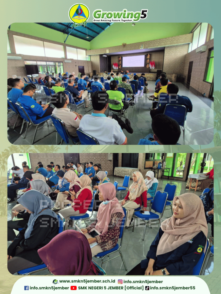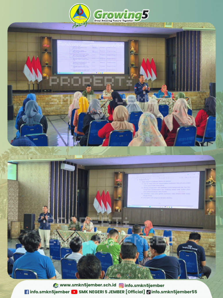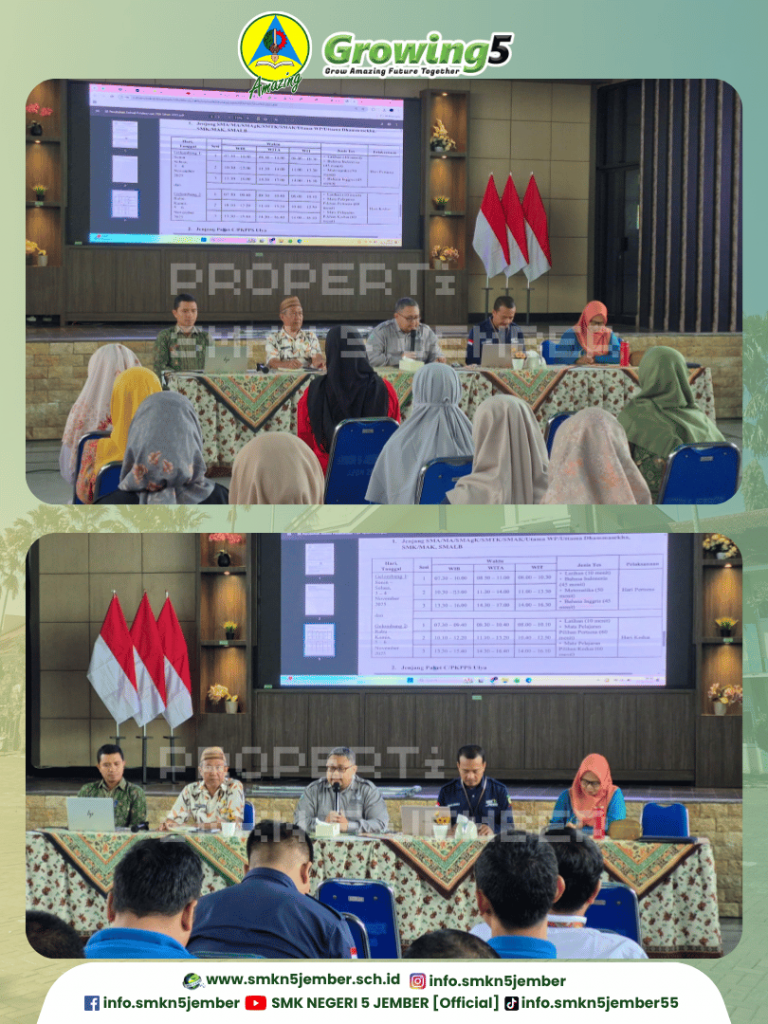 Dipimpin oleh Kepala SMK Negeri 5 Jember, Nanda Wiratama, Miftakhul Fauzi, S.Pd, M.Pd, dibersamai seluruh Wakil kepala sekolah, KoorTas, Kaprogli dan bapak ibu guru tim pantia, rapat koordinasi kesiapan pelaksanaan TKA di gelar di aula Kaliber.